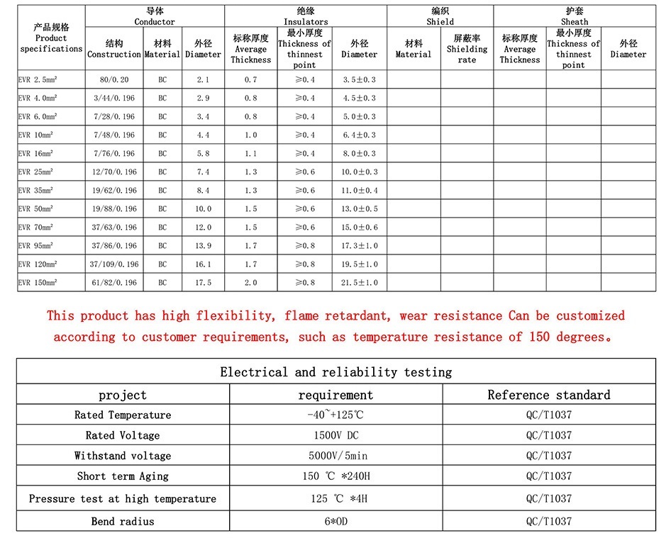 EV Unshielded cable